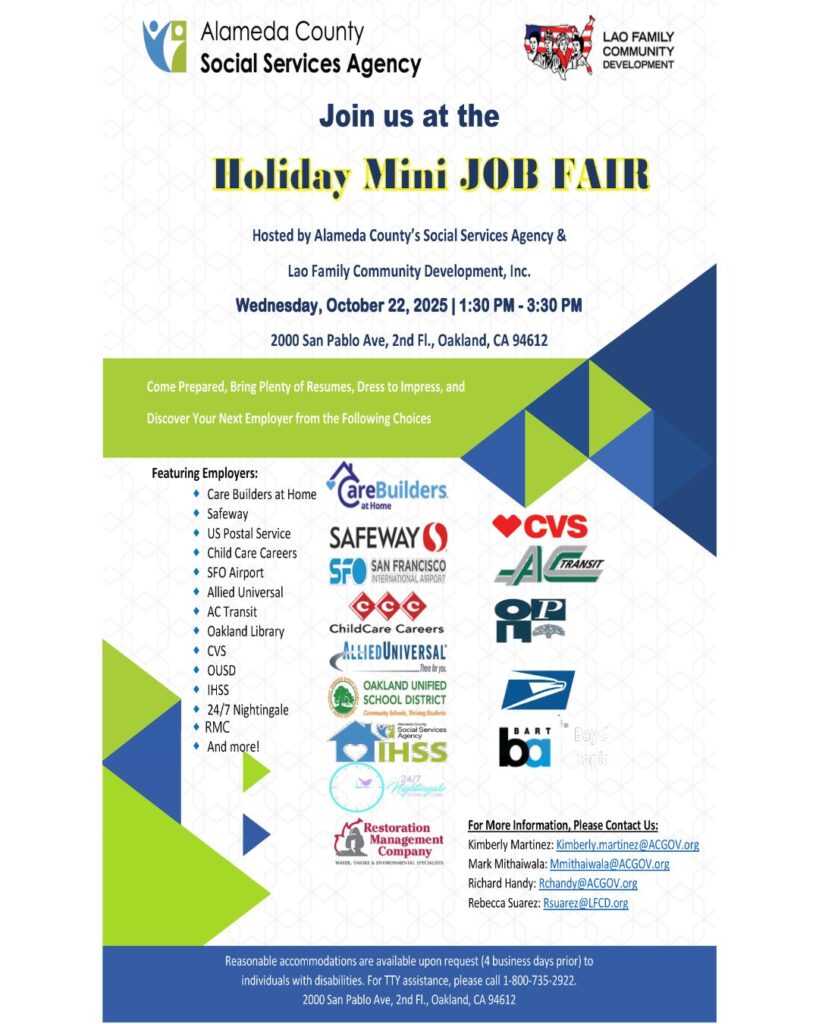 Join Alameda County Social Services Agency and Lao Family Community Development at the Holiday Mini Job Fair!