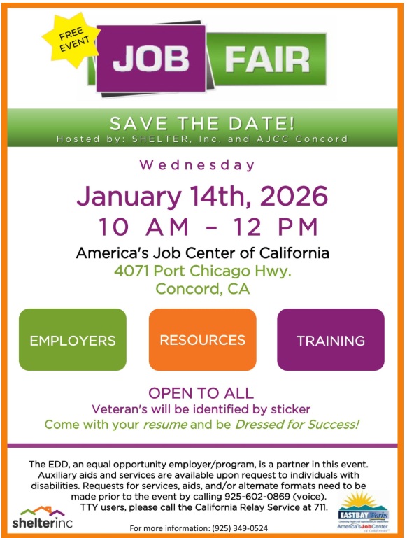 (hosted by Shelter Inc. & America’s Job Center in Concord, CA)