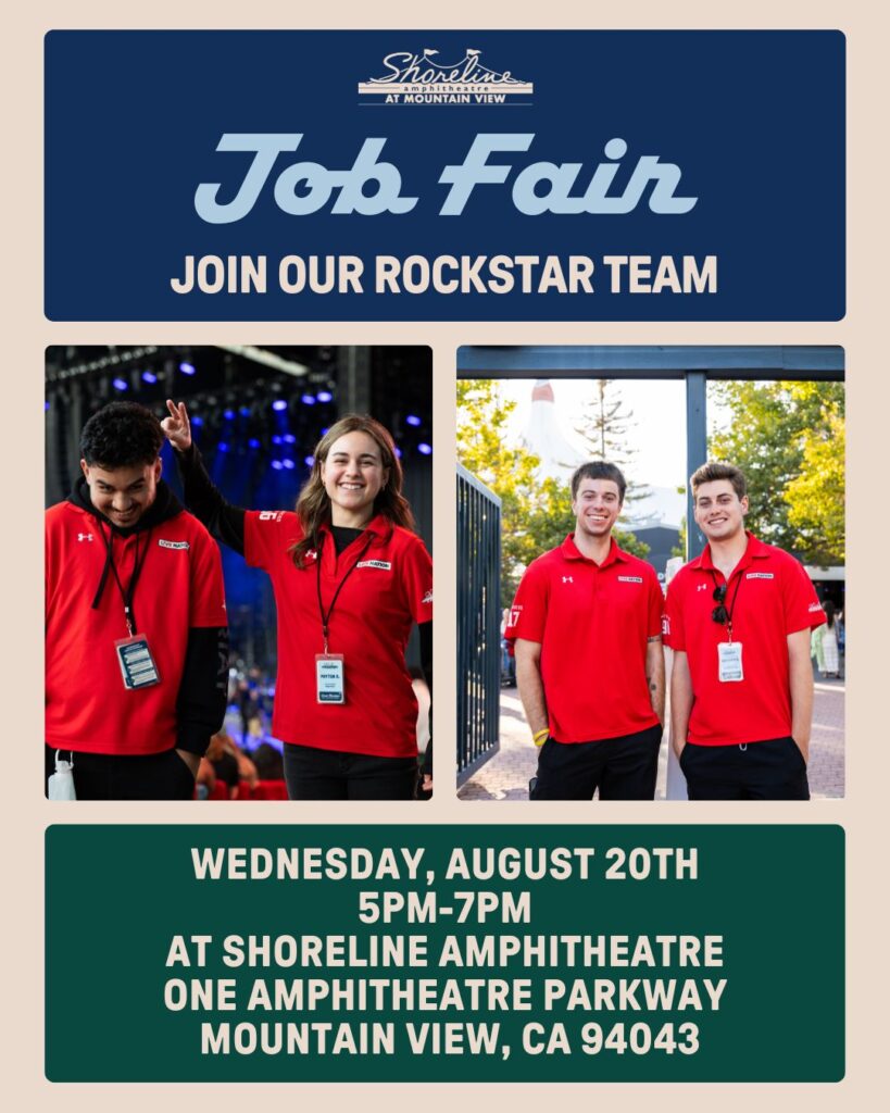 Shoreline Amphitheatre is hiring! Come visit us at our Job Fair: